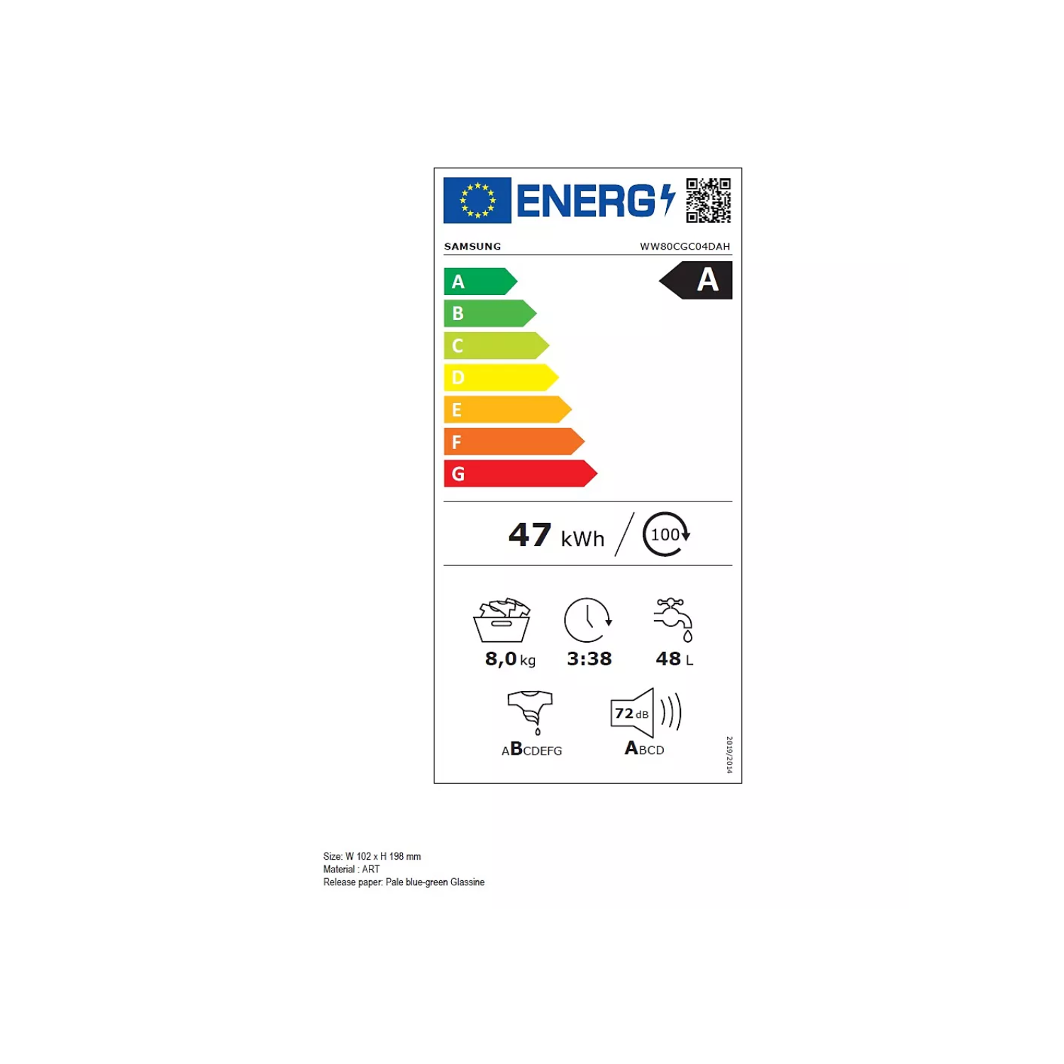 Le lave-linge SAMSUNG Ecobubble™ WW80CGC04DAH allie performance, efficacité énergétique et technologies innovantes pour un soin optimal de votre linge.